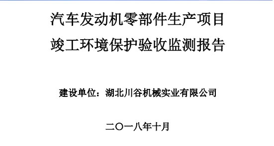 • 湖北川谷機械實業有限公司汽車發動機零部件生產項目竣工環境保護驗收公示2018-12-24